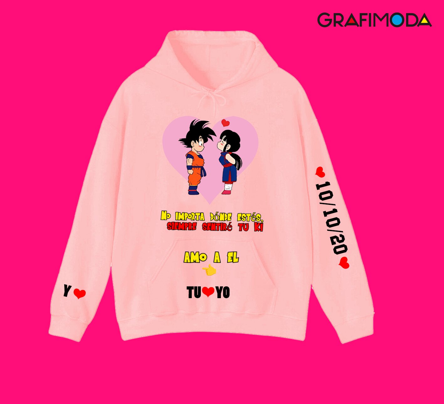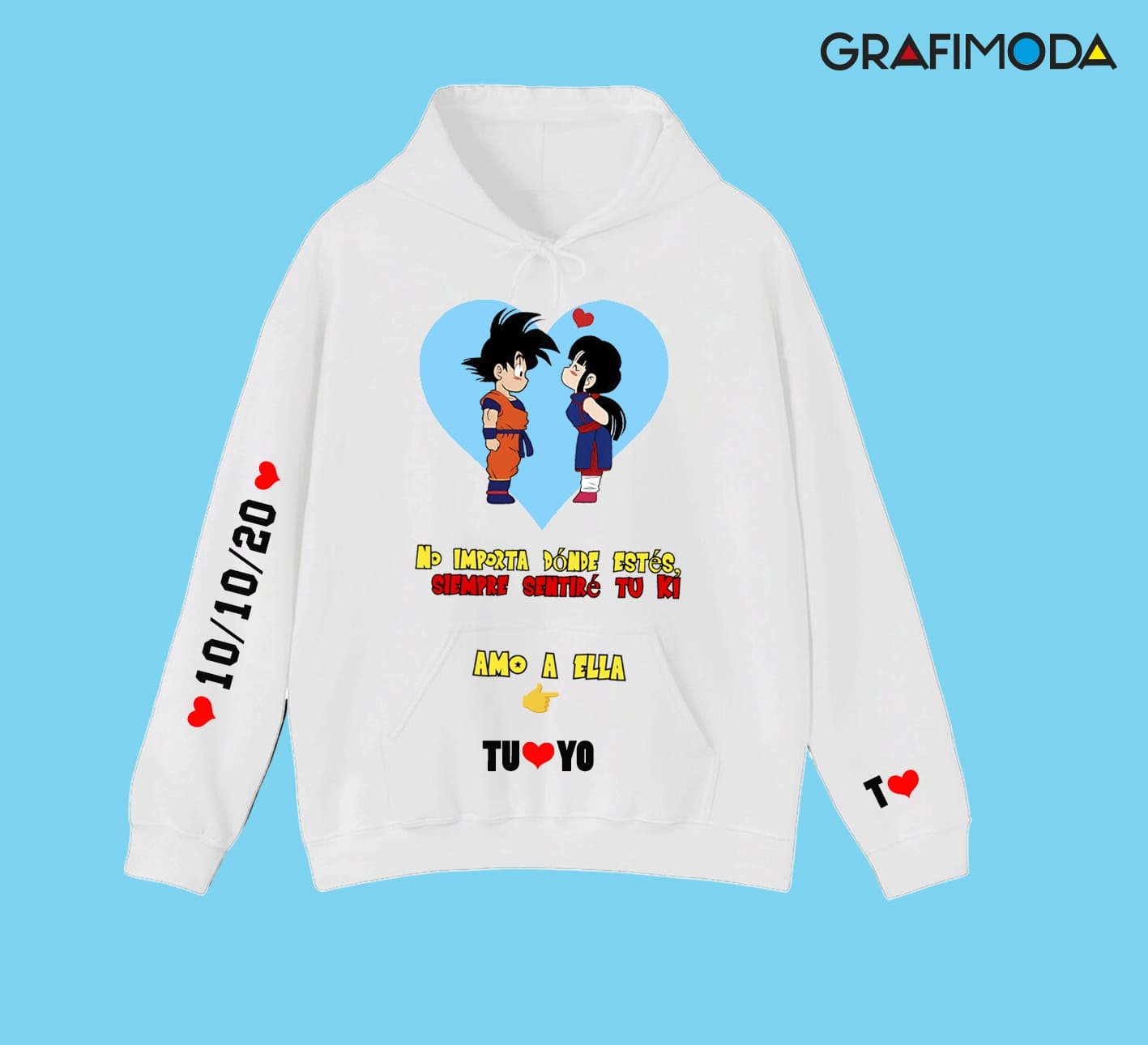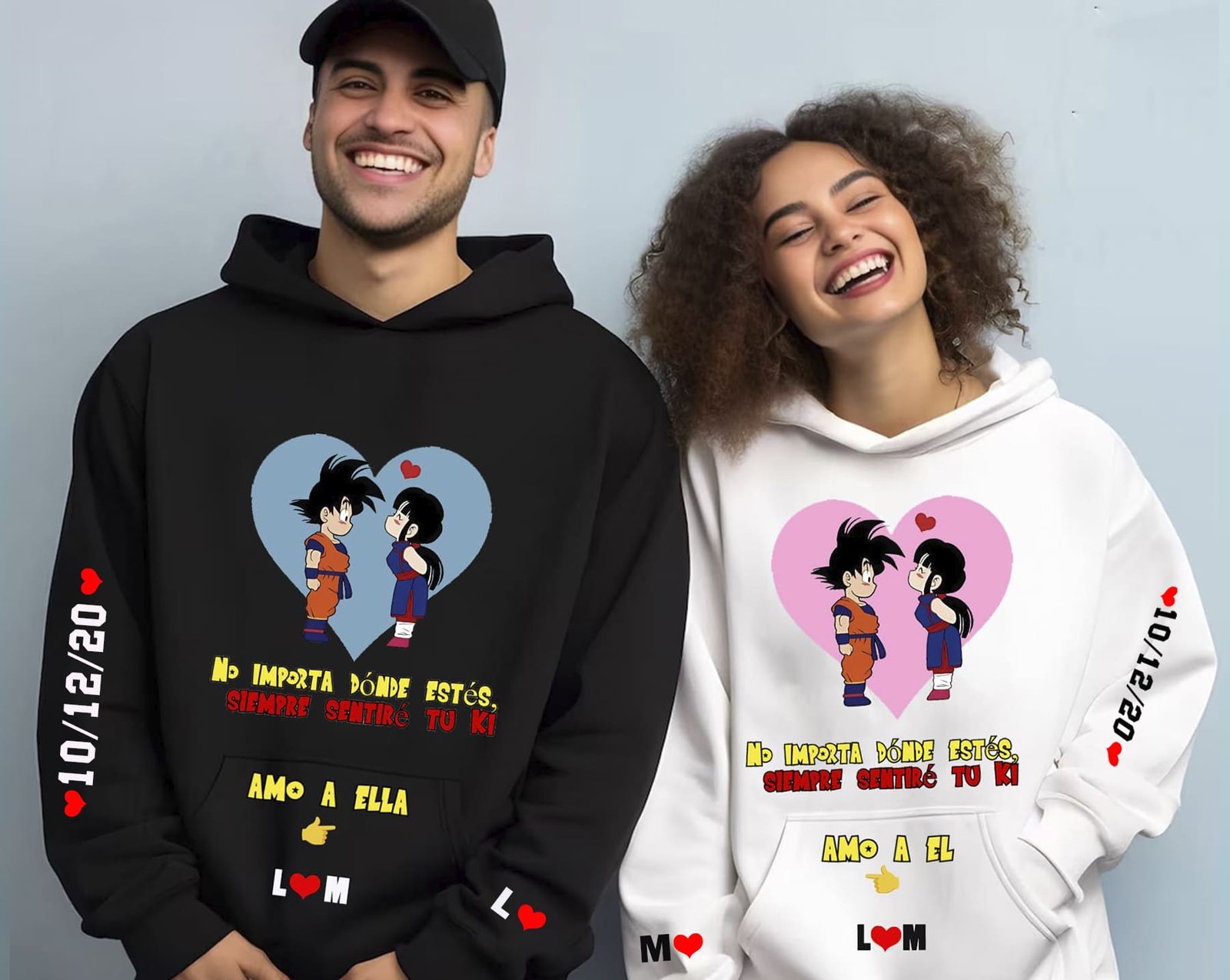 La clave está en los detalles. Al hacer tu pedido, podrás indicarnos los colores del diseño, las frases que te representen, las fechas memorables, y los nombres que deseas incorporar en cada hoodie. Nuestro proceso de personalización es simple y te asegura un producto único que refleja tu relación y estilo personal. Además, los colores vibrantes y los diseños nítidos logran destacar el arte de Dragon Ball Z mientras se adaptan perfectamente a los gustos contemporáneos.