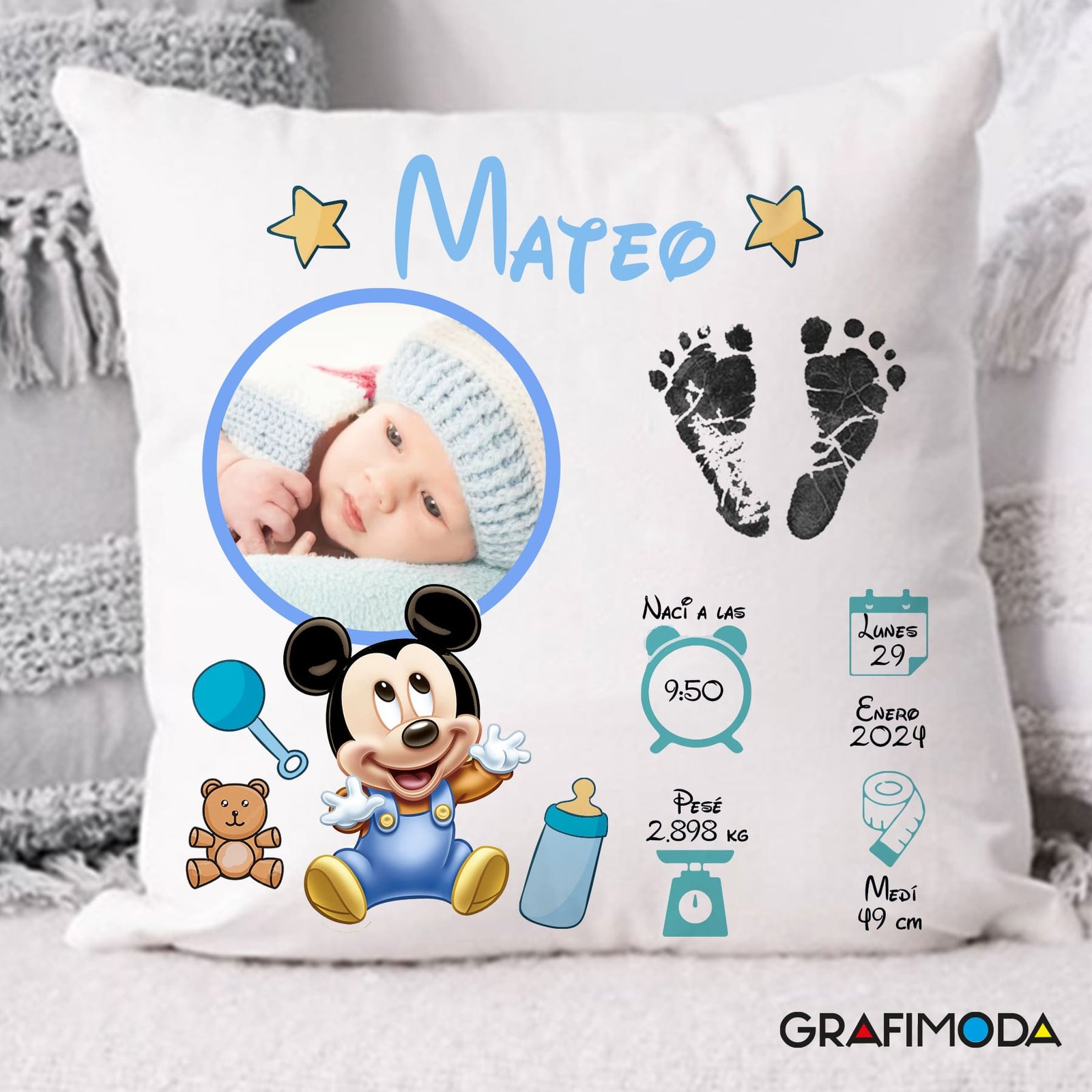 Este cojín destaca por sus opciones de personalización. Puedes incluir la fecha de nacimiento de tu bebé, sus fotos e incluso su nombre, haciendo que cada pieza sea verdaderamente única. Esta característica no solo convierte al cojín en un regalo ideal para recién nacidos y niños pequeños, sino también en un recuerdo que perdura con el tiempo. Imagine crear un artículo que es tanto funcional como sentimental; eso es lo que este cojín logra. La impresión de alta calidad asegura que las personalizaciones sean vibrantes, duraderas y llenas de vida.